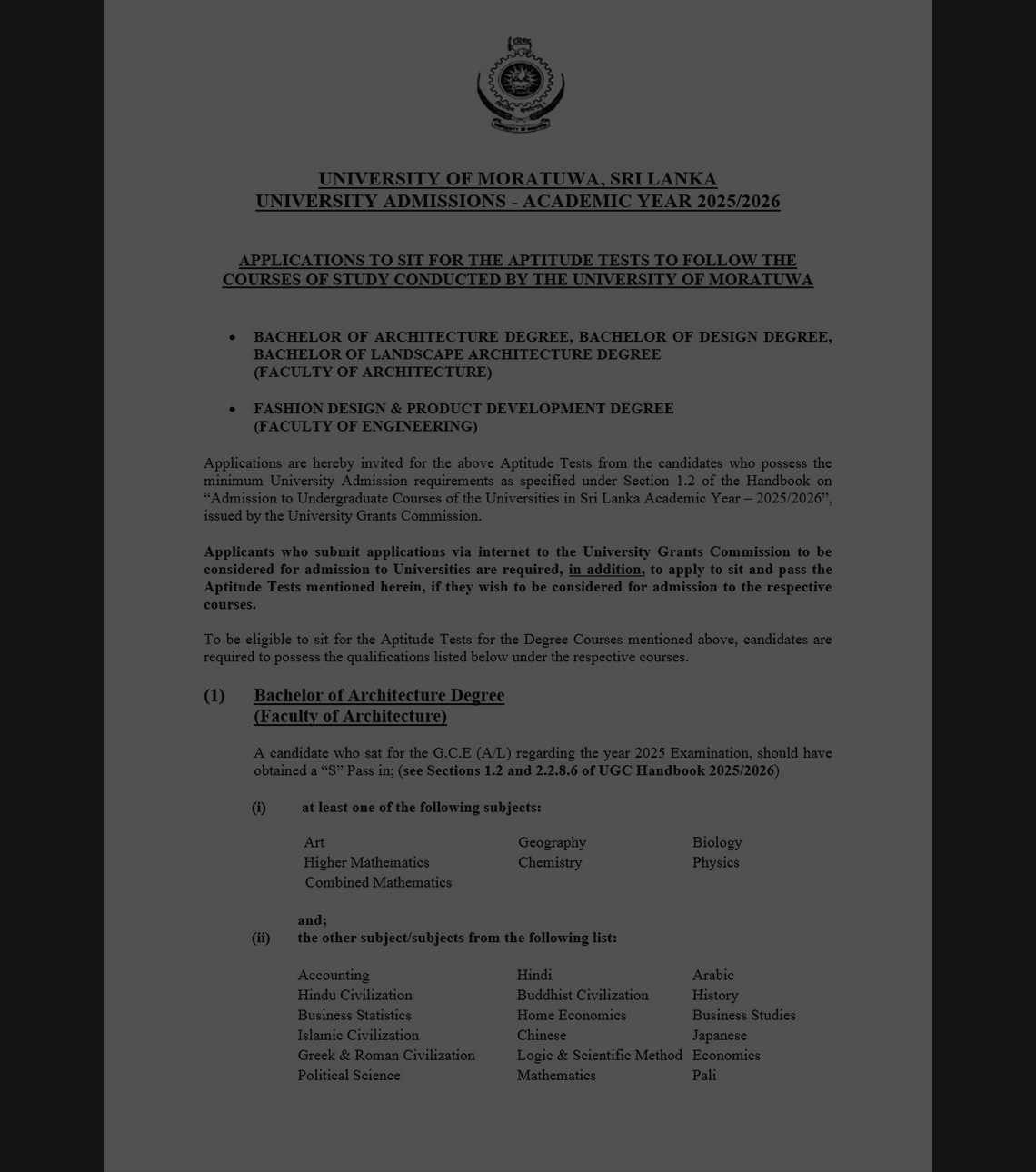 Emboldened by the daring vision of becoming South Asia’s center of excellence in technology and related disciplines, the University of Moratuwa prides itself in being a hub of innovation and creativity. Encouraging its students to think out of the box from day one, the curriculum of the university takes a futuristic approach. Backed by a faculty that is dedicated towards delivering excellence in education, with the right infrastructure in place to facilitate a seamless learning experience, and a research program that has made a significant contribution towards the global knowledge bank, the university is a fully equipped hub in delivering excellence to its students and to the society as a whole.
