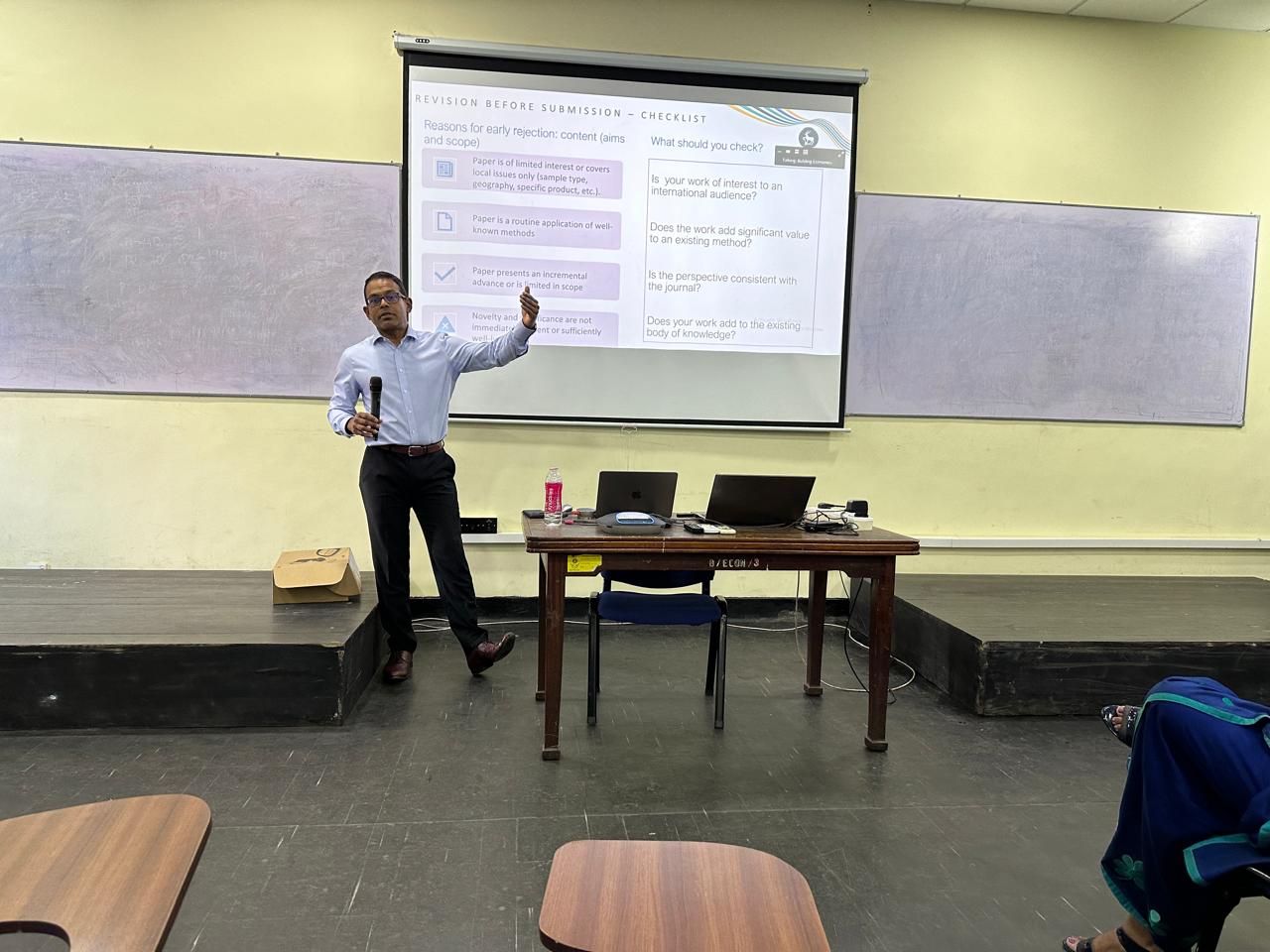 The Department of Building Economics hosted the 85th BEMRU Colloquium on 24th October 2024 at the department auditorium. Prof. Chanaka Jayawardhena, Head of the Department of Marketing at Surrey Business School, United Kingdom, conducted the session titled Handling the Revise and Resubmit Process and Using AI Ethically. The colloquium offered valuable insights into navigating the revise-and-resubmit process in academic publishing and emphasized the ethical use of AI tools in research and professional practices, fostering responsible innovation and integrity.