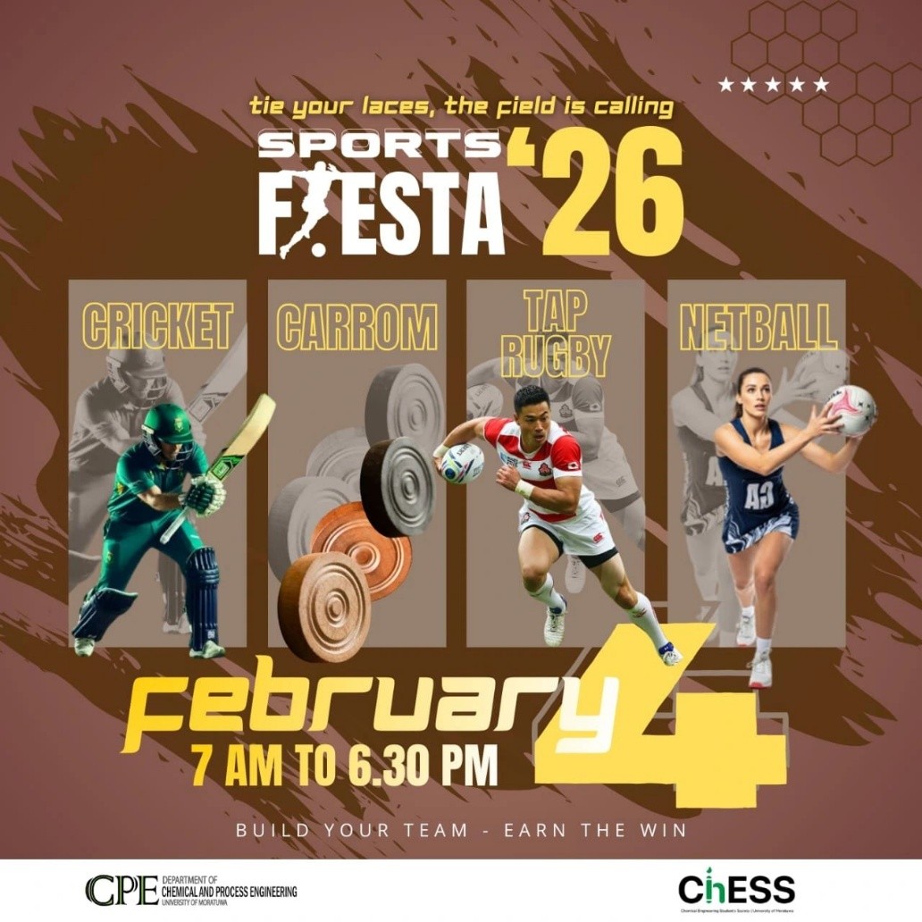 Sport Fiesta 26 When Wednesday, February 4, 2026 - 14:38 Where University Play Grounds, University of Moratuwa Read more about Sport Fiesta 26