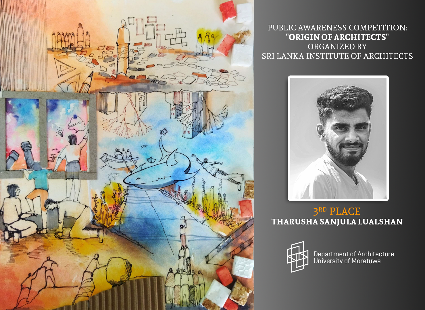 3 students from B. Arch '20 batch of Department of Architecture, University of Moratuwa have emerged as the winners of the “Origin of Architects” Public Awareness Art Competition organized by the Sri Lanka Institute of Architects.