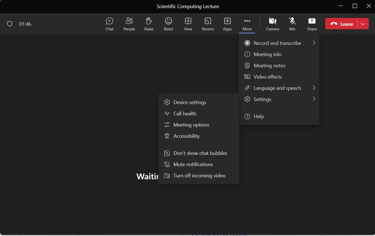 Option 2: Using Teams Meeting - Preferred for long running programs with a predefined Microsoft Team such as lectures, research groups, etc.