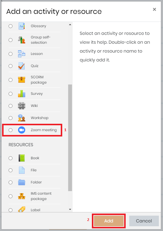 - After successful creation you will see your ZOOM meeting in your course. Both Student and Teacher can join by clicking on the activity in the course.